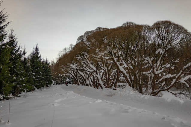 С учётом отсутствия света вытянутое из тени изображение выглядит необычно, деревья не отбрасывают тени, объёмность сугробов выглядит несколько непривычно.