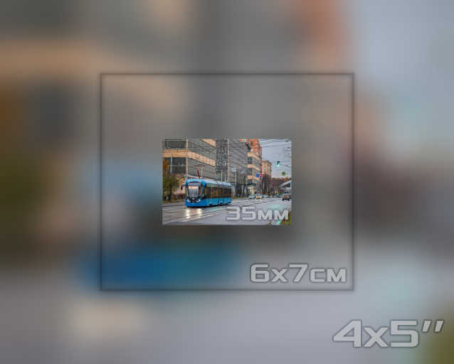 Что удивительно, гиперфокальное расстояние в такой комбинации получается 344 метра. Для лучшего понимания, поясню. Гиперфокальное расстояние — это предельное расстояние до объекта, за которым все объекты оказываются в резкости. Т.е. до 344 метров можно располагать человека перед камерой, а за ним размывать задний фон. Удивительно было настраивать резкость и наглядно по фокус-пикингу наблюдать, как полоса резкости бежит от камеры в сторону горизонта, лишь где-то очень далеко сливаясь в единое поле. Для короткофокусных объективов такое недоступно. Даже для полнокадрового объектива 50 мм f1.2 гиперфокальное растояние составляет всего лишь 72 метра. Этим и отличается изображение с камеры большого формата. Т.е. при таком гиперфокальном расстоянии в 344 метра угол обзора на кадре 4x5 будет идентичен 45 мм на полном кадре.