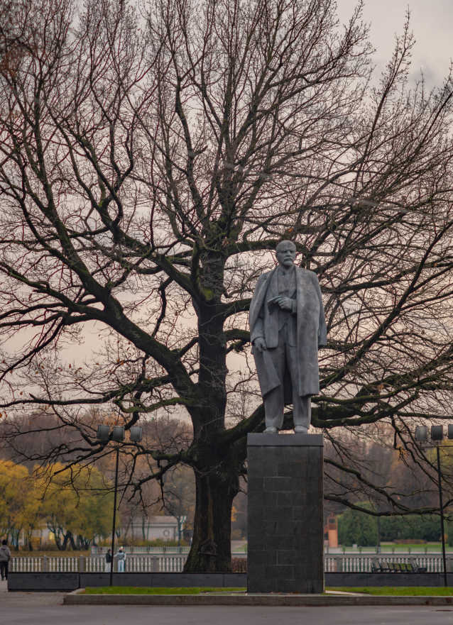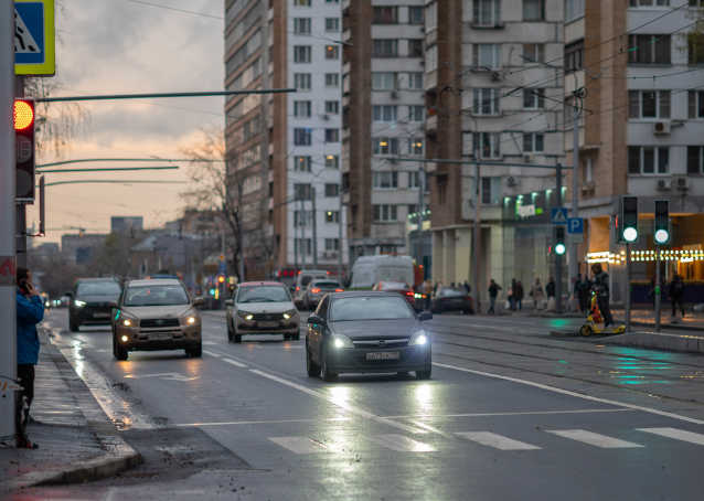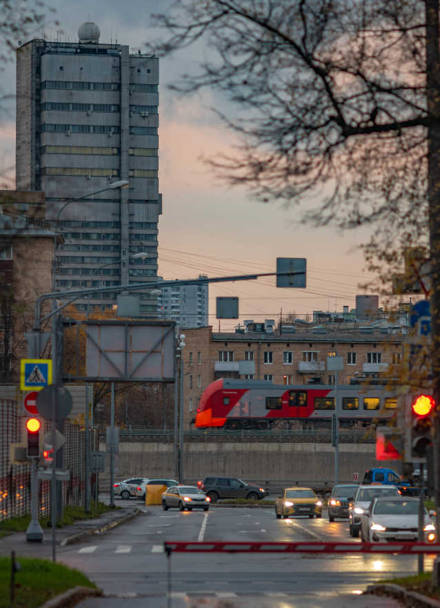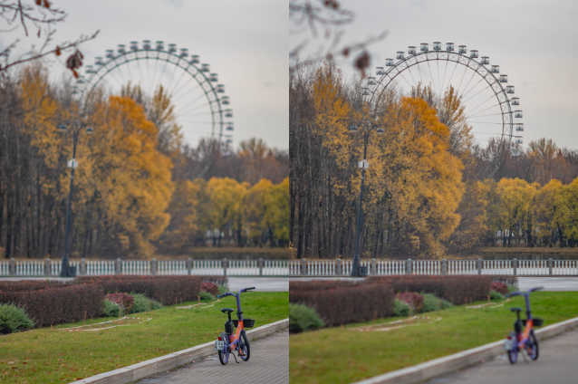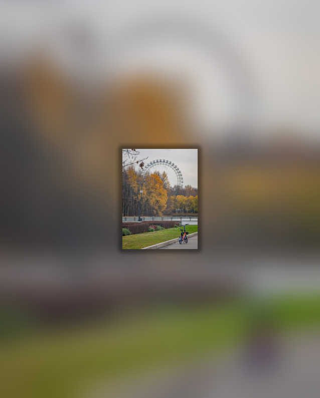 Сложно оценить дистанцию до объекта, но в данном случае самокат стоял на расстоянии 70-80 метров, при этом фон характерно размывался. На втором изображении я сфокусировался на заднем плане и самокат оказался в нерезкости. На кадре формата 4x5 до самоката окажется большое пространство, что добавит ощущение объёма.