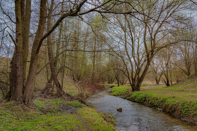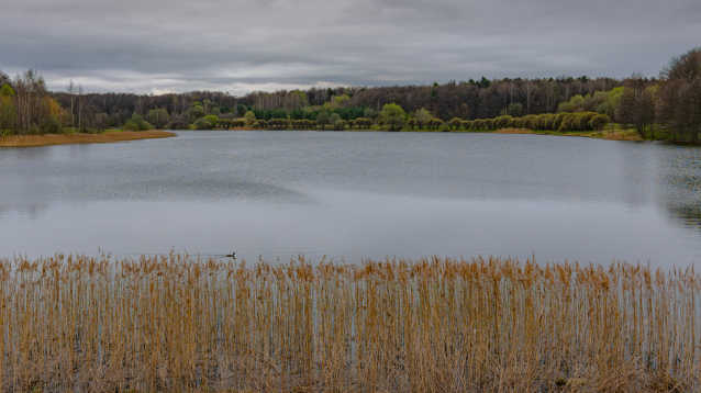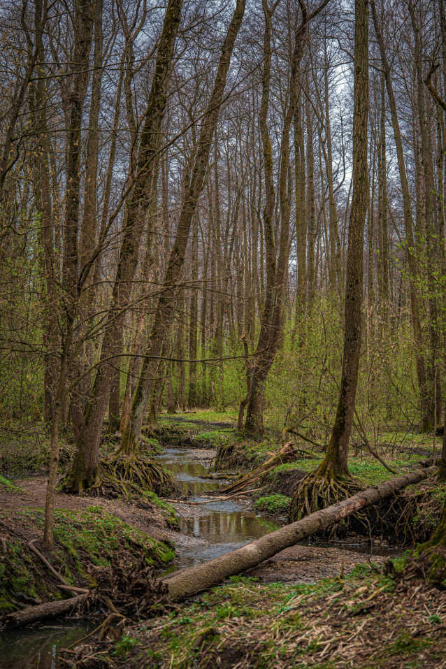 С большим азартом, перепрыгивая через повалеленные деревья и кочки на другой стороны реки друг за другом, играючи бежали две лисы. Я сначала подумал, что это чьи-то собаки играюся, а когда они развернулись в сторону леса, не успел сфотографировать. Но потом, вдали мне показалось, что из кустов на меня поглядывает лиса. Так и есть. Успел нацелиться и сфотографировать возмущённую нежданным вторжением на их территорию мордашку.