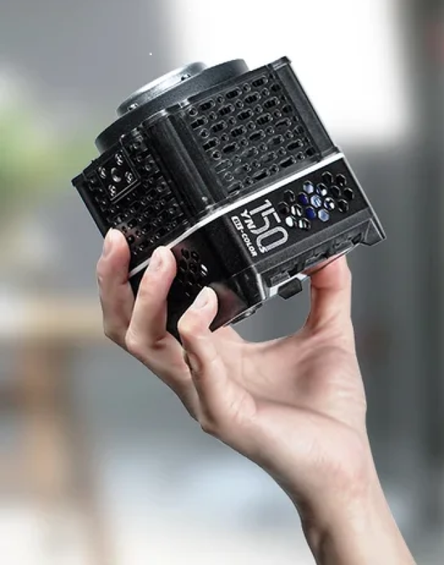 Вопрос встал лишь за поиском подходящего светильника постоянного света под данный байонет. А это оказалось задачей нетривиальной. Максимальная мощность для данного китайского байонета «Mini Bowens» везде ограничивалась 60-80 ваттами, некоторые фирмы предлагали и 100 ватт. В целом, для работы в студии с рефлектором, этого за глаза достаточно, но для того, чтобы просветить две ткани софтбокса и рассеить свет по куполу диаметром 120 мм этих мощностей было явно недостаточно. И тут на Алиэкспрессе я наткнулся на достаточно компактный, и лёгкий светильник Yongnuo YN-150 мощностью 150 ватт!